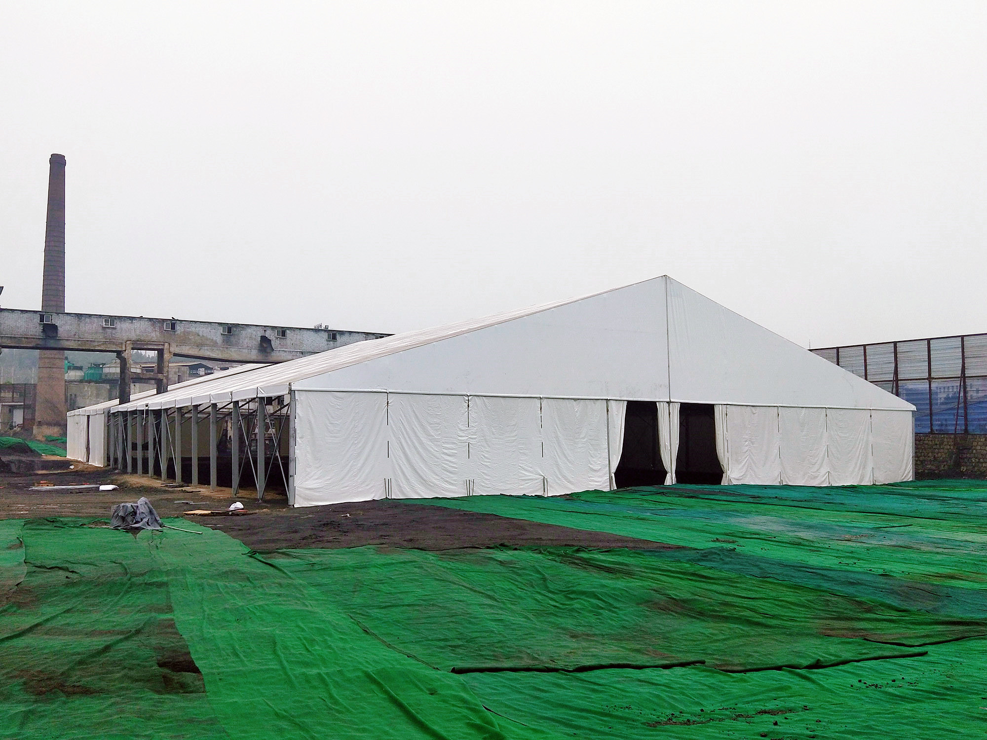 體育賽事篷房的魅力并不全在于外觀,更在于便捷性。對于不同場地的大小,可以自由組合篷房的間數和不同賽事的需求。對于場地的地面無論是沙地,草地,水泥地還是如大理石那樣不可破壞的地面,體育賽事篷房可以用膨脹螺絲、鋼釬以及承重盤,使篷房能夠安全穩固的進行搭建和使用,保證體育賽事的順利進行。
